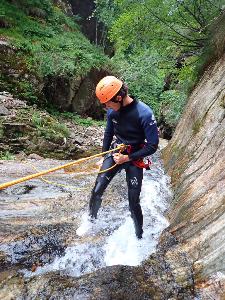Situato in Alta Valsermenza, l’itinerario inizia e termina al borgo di Carcoforo. Canyoning Adatto a chi ha già avuto una prima esperienza di torrentismo e potrà migliorare e praticare le tecniche di discesa su corda in autonomia, utilizzando il discensore. Il percorso prevede 6 calate in corda tra le quali una di 35 metri di emozioni verticali, meravigliosa, termina in una splendida lama d’acqua verde. Il torrente scorre in un paesaggio alpino maestoso di rara bellezza.